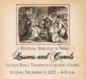 Please join us Sunday, December 3 at 4:00 p.m. in the Colonial Chapel for