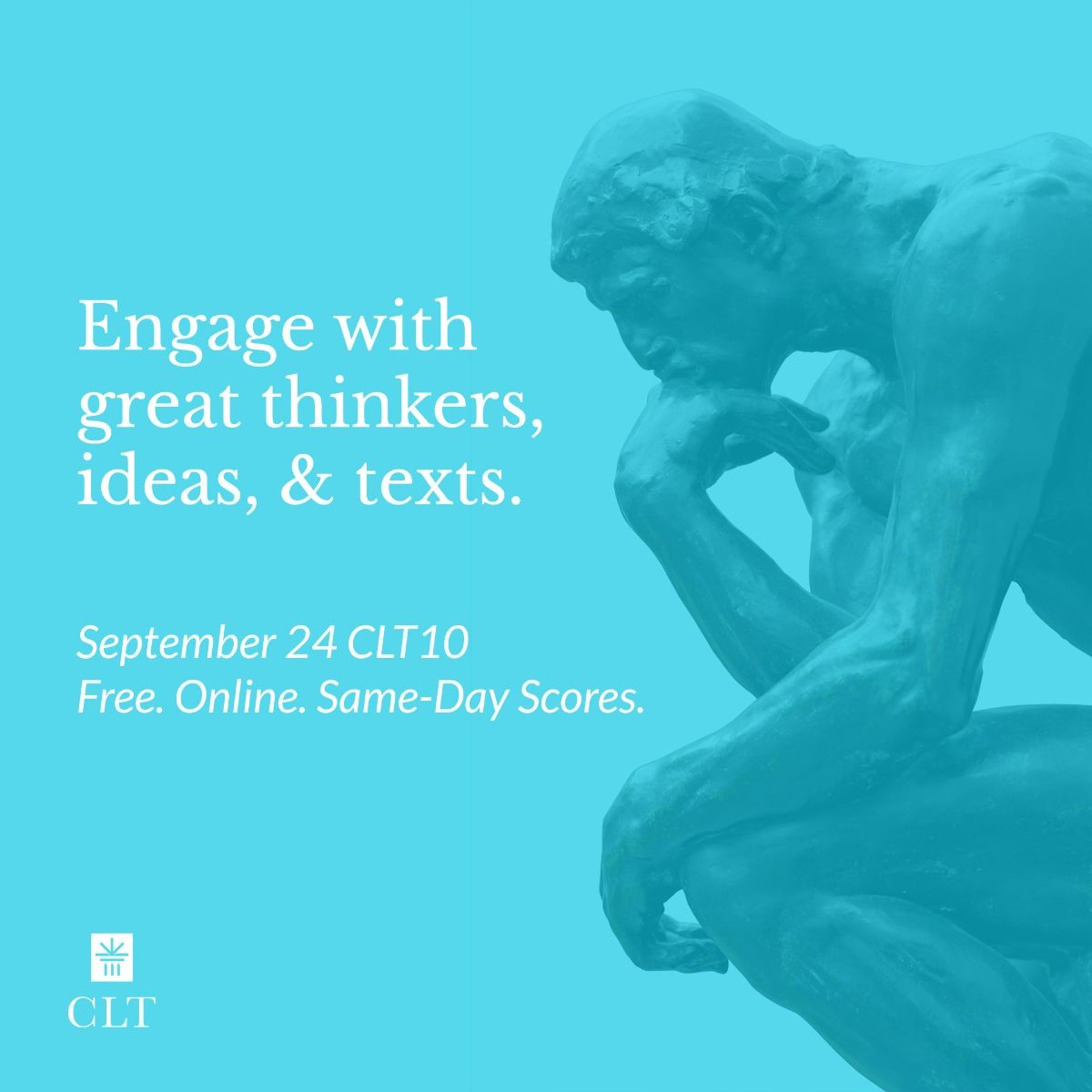The registration deadline for the September 24th CLT10 is just 7 days away! The CLT10 offers same-day results, is free to take, and can be taken from home with a parent proctor. Start the exam at any point on the 24th, before midnight Eastern Time.