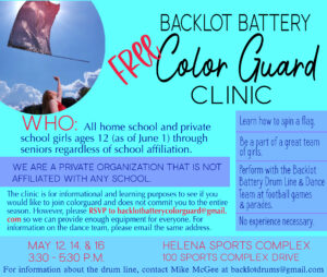 The clinic is free, but please email backlotbatterycolorguard@gmail.com so we can provide enough equipment for everyone.
