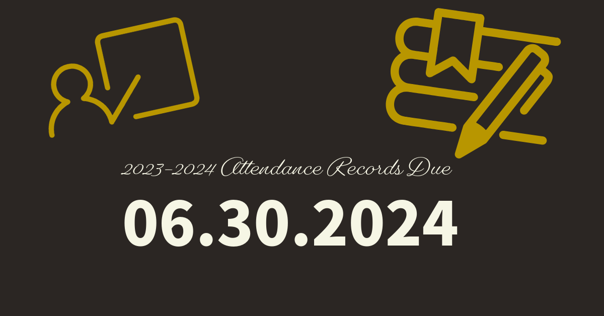 Please submit your 2023-2024 attendance records through the online form or to the school office before June 30th.
