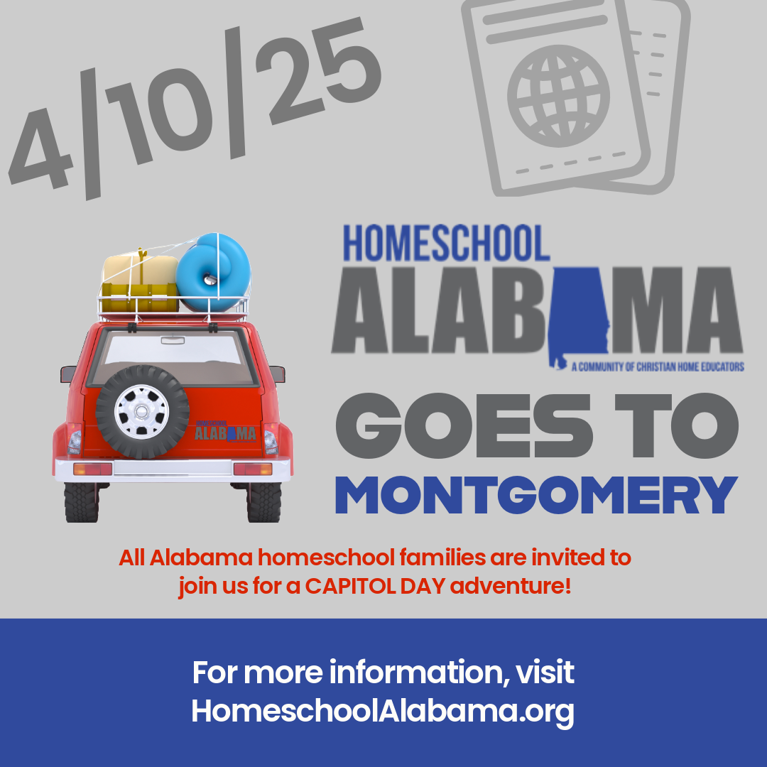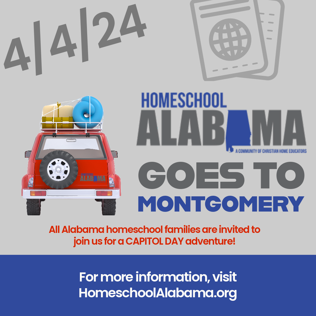 Montgomery, AL Montgomery, AL, United StatesHomeschool Alabama is planning a Day at the Capitol for Alabama homeschoolers on Thursday April 4, 2024. We hope to see a LOT of homeschool families on that day! Be the face of homeschooling to our legislators and show support for homeschool freedom. Tour of State House Tour of Capitol Building Deliver cookies to state legislators Speakers Field trip activities Join homeschooling families from across the state to tour the state capitol building, visit historic sites, meet your legislators, and support homeschool freedom. Register now! We will update with more details as tour schedules and other events are set. Limited to 200 people so Register Today!