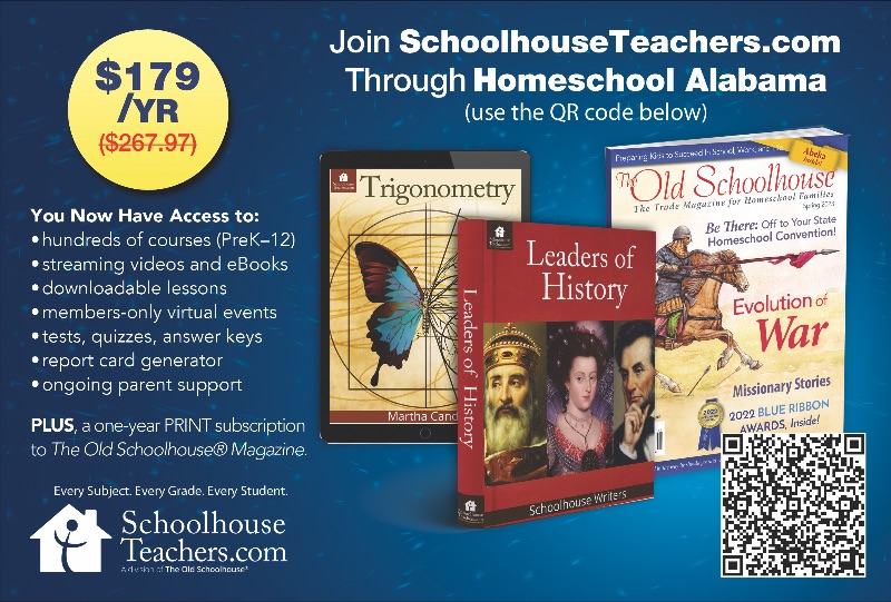Special discount pricing for SchoolhouseTeachers.com resources and magazine through Homeschool Alabama.